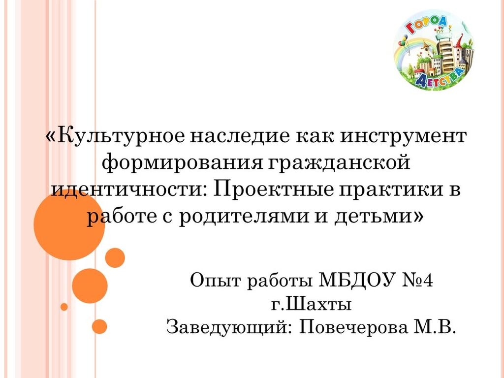 «Культурное наследие как инструмент формирования гражданской идентичности: проектные практики в работе с родителями и детьми».